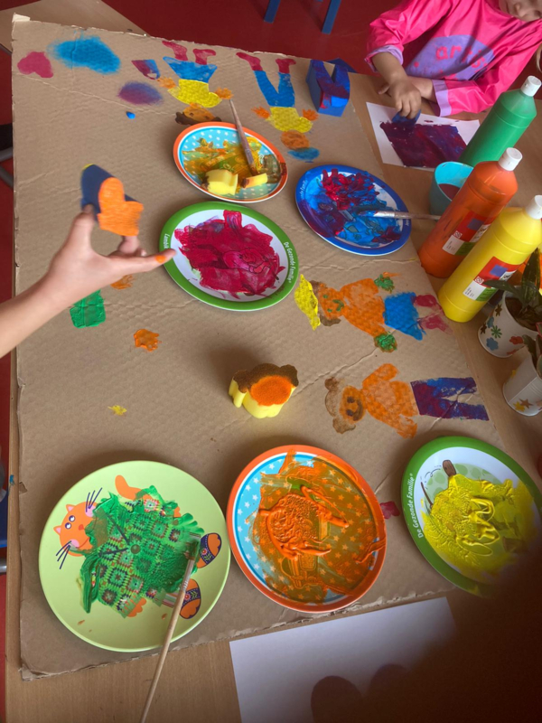 Je gebruikt ze met plakkaatverf. Na gebruik kan je ze weer uitspoelen en dan door met een andere kleur.