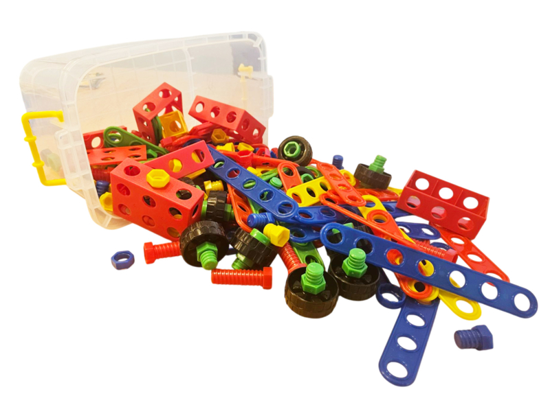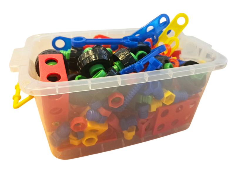 OverzichtBouwset met wel 300 onderdelen waar je echt van alles mee kan maken.