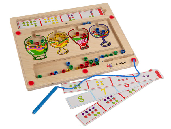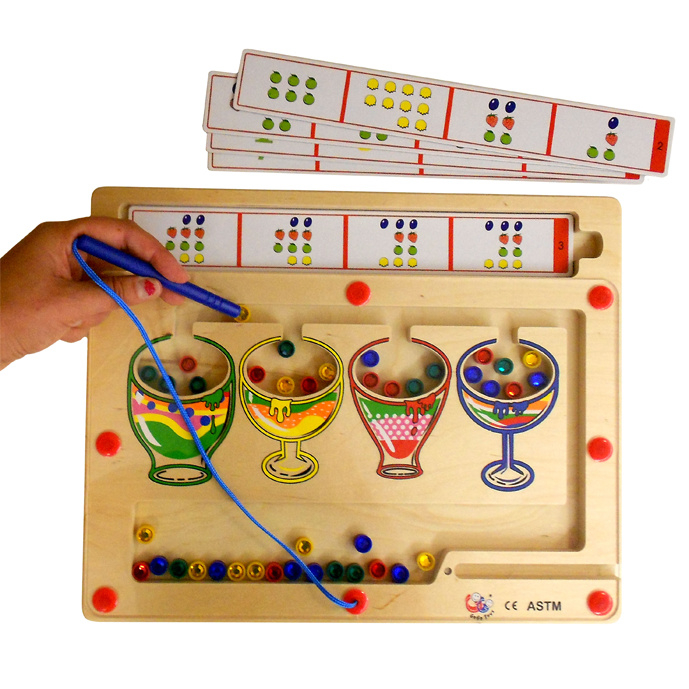 Met de magneetpen beweeg je de diamanten door het gangetje naar het juiste glas. Er worden 6 dubbelzijdige patroonkaarten bijgeleverd waarop je kunt zien hoeveel diamanten en welke kleur in het glas moeten. Dat is soms met gekleurde getallen en soms met gekleurde vruchtjes. Heb je het allemaal goed, dan gaan de diamantjes weer terug en kun je met de volgende patroonkaart opnieuw beginnen.
