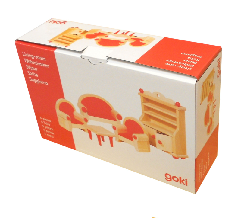 OverzichtExtra mooi uitgevoerde, houten poppenhuismeubeltjes van het merk Goki.