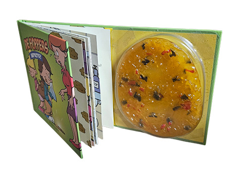 Extra leuk omdat er bij dit boekje dus ook nep-kots zit waarmee je je eigen moeder voor de gek kan houden.