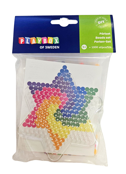 In deze set zitten 1000 strijkkralen in prachtige felle neon kleuren, een pinbordjes in de vorm van een ster en een vorbeeldje dat je onder het bordje kan leggen om hem zo precies na te maken.
