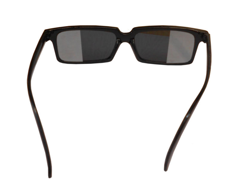Deze bril heeft aan de zijkanten van de glazen kleine spiegeltjes... daardoor kan je zien wat er achter je gebeurd en kan je dus spioneren zonder dat iemand het doorheeft!