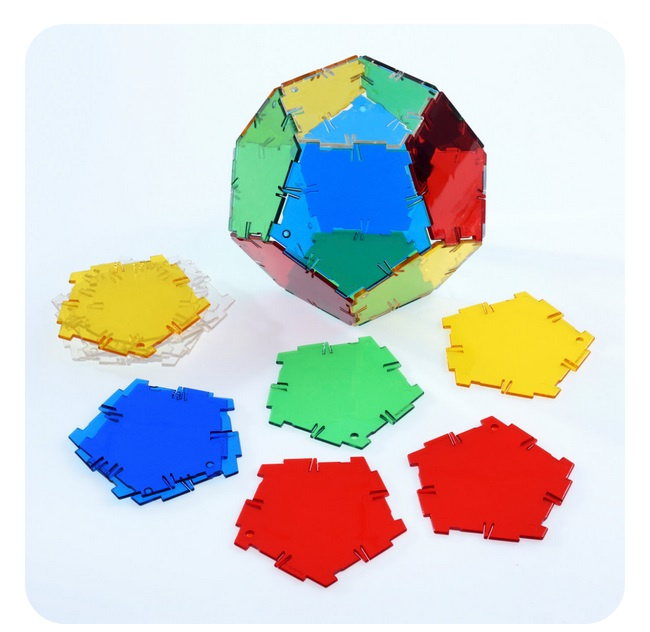 Door de vorm van de verschillende elementen (vierkanten, driehoeken en pentagons) leren kinderen echt over techniek en constructies. Zo leer je bijvoorbeeld dat je met een aantal pentagons een figuur kan maken die lijkt op een bal... en dat van rechte onderdelen!