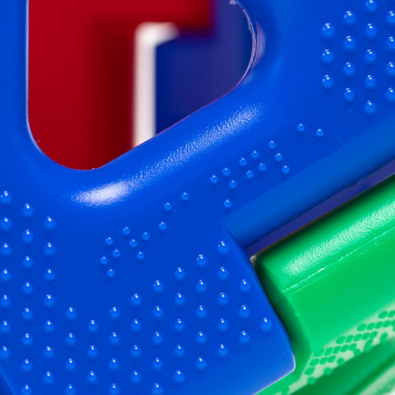 OverzichtPolydron Groot bestaat uit grote goed hanteerbare bouwelementen, die eenvoudig en stevig in elkaar passen en waarmee je eenvoudig spectaculaire bouwwerken maakt. Ieder element heeft een tactiel oppervlak met de vorm van het element in braille.
