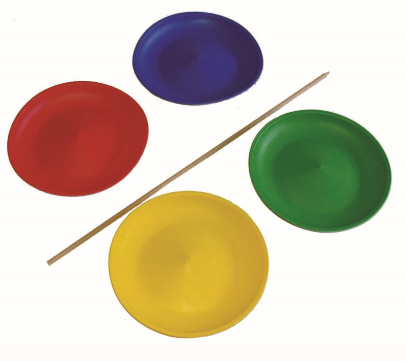 OverzichtBalanceer de bordjes op hun stokje terwijl ze rondraaien.