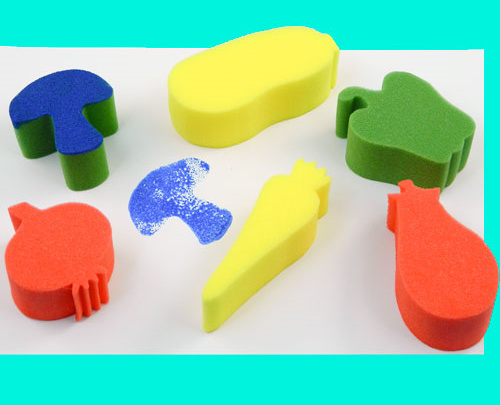 OverzichtSponsstempels zijn grote, dikke stempels gemaakt van schuimrubber.