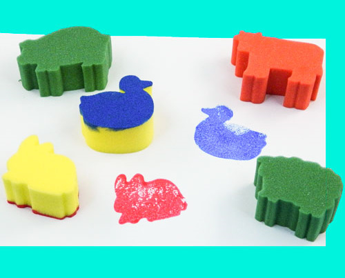 OverzichtSponsstempels zijn grote, dikke stempels gemaakt van schuimrubber.