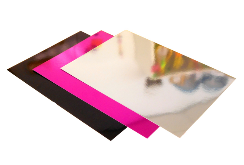 OverzichtSet van 10 vellen glanzend metallic karton in verschillende kleuren.