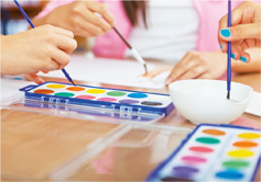 OverzichtDoosje met 12 kleuren waterverf en een penseel.