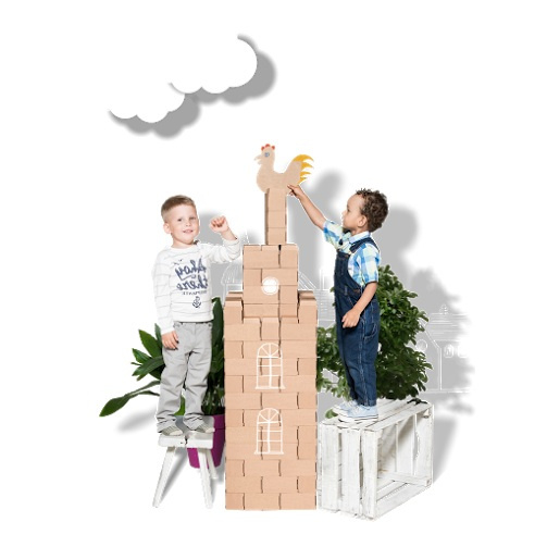 Je zou het misschien niet verwachten, maar deze kartonnen blokken zijn echt superstevig! Je kan er huizen, tunnels en kastelen van bouwen. Op de beurs waar wij dit hebben ingekocht hadden ze zelfs de stoelen waar wij op zaten van gigi blokken gebouwd!