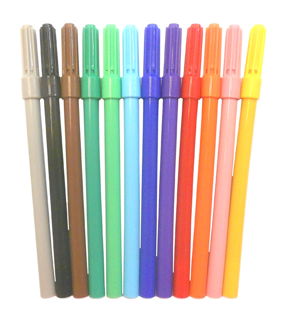 OverzichtSet met 12 viltstiften in mooie, heldere kleuren met een zachte punt die heel fijn schrijft/kleurt.