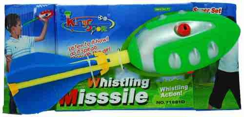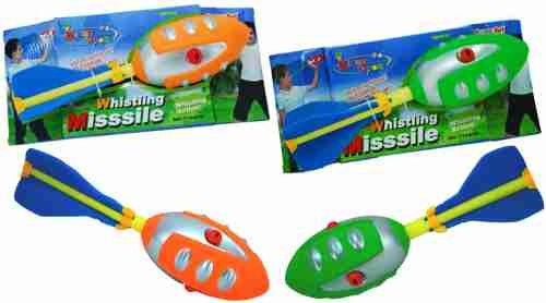 OverzichtEen speervormige bal die met grote snelheid door de lucht vliegt en toch veilig is door de opbouw met foam. Hij heet ook wel whistling missile, want er zit een fluitje in.