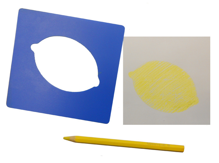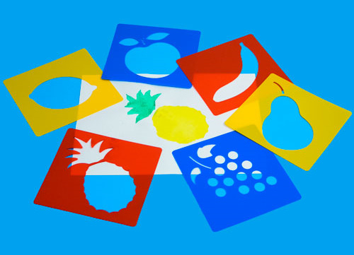 OverzichtSet van 6 sjablonen met afbeeldingen van fruit.