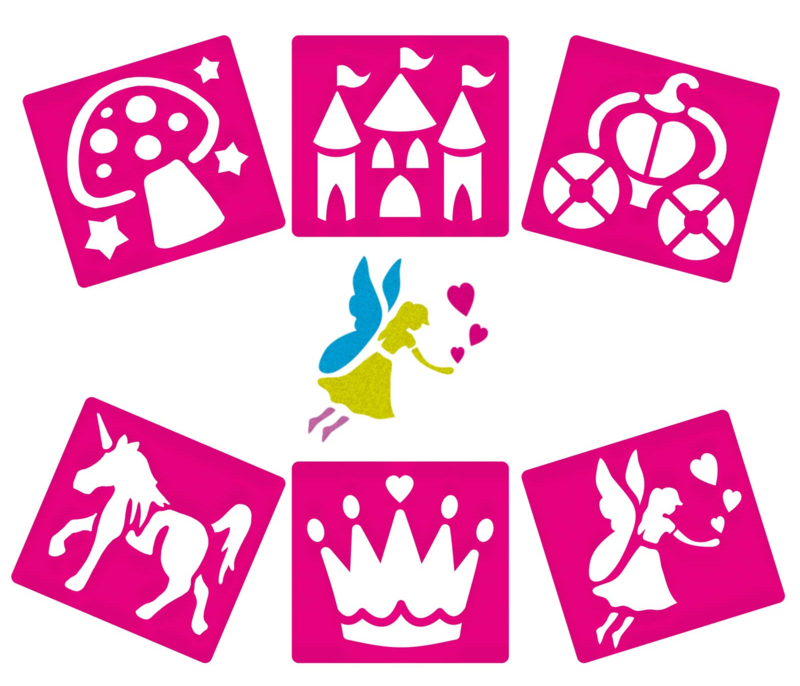 OverzichtSet van 6 kunststof sjablonen met een sprookjes thema. Met 6 duidelijk herkenbare en echt hele leuke sprookjes afbeeldingen.