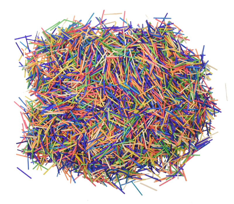 Deze houtjes zijn verkrijgbaar in een gekleurde en een ongekleurde variant. En van beide varianten hebben we zowel een grote zak (ongeveer 5.500 houtjes), of een kleine zak (ongeveer 1000 houtjes)