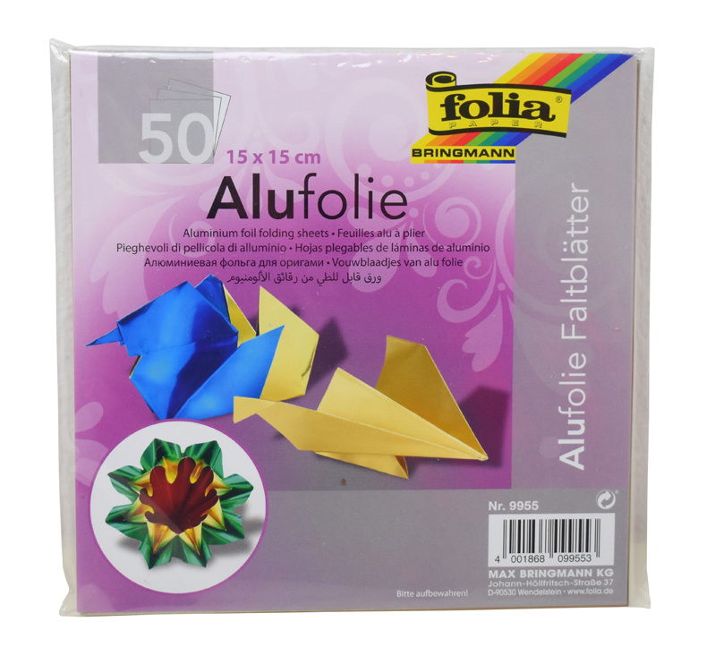 OverzichtSet van 50 vouwblaadjes van 15 x 15cm met een glanzende metallic look.