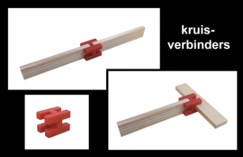 Er zijn kruisverbinders; daarmee kan je plankje in elkaars verlengde vastzetten of een rechte hoek maken.