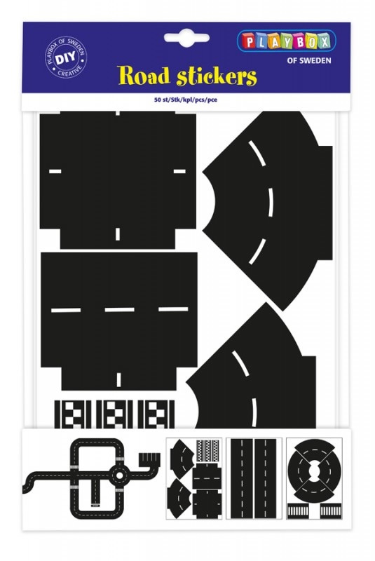 OverzichtMaak een echt wegenparcours door de hele kamer (of over de tafel, of over de muur) met dit zeer uitgebreide stickerpakket.