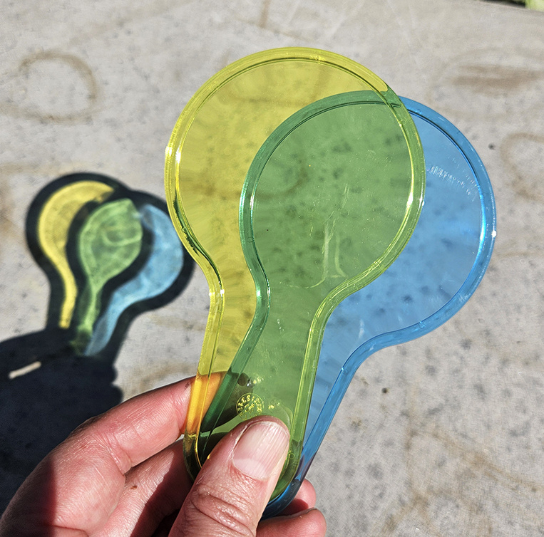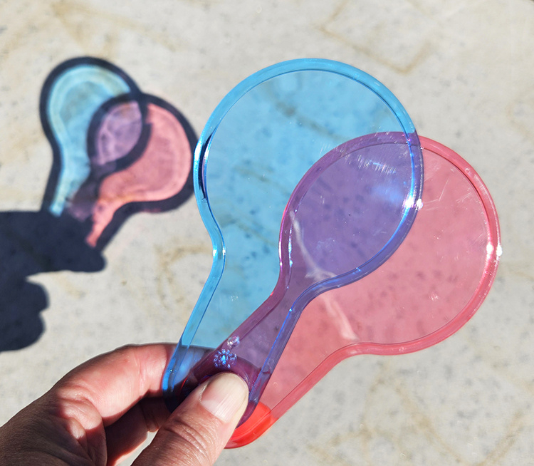 Hoe ziet de wereld eruit met een paarse peddel voor je ogen? En wat er gebeurd er als je een rode en een gele peddel over elkaar heen schuift?