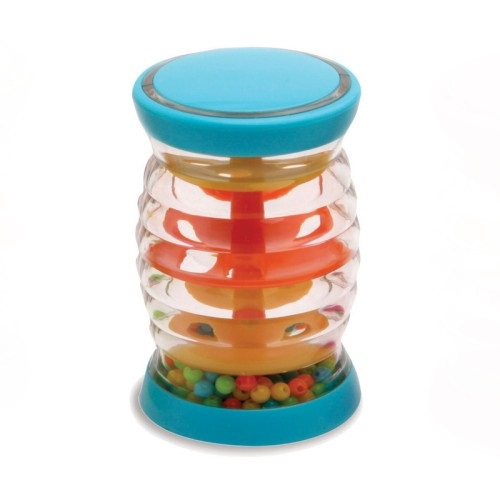 Doordat dit een kleine variant is is het veel makkelijker vast te houden voor kleine kinderen (als je weinig motoriek hebt sla je jezelf met zo'n lange voor je hoofd). Daarom is deze mini regenmaker al geschikt vanaf 3 maanden.