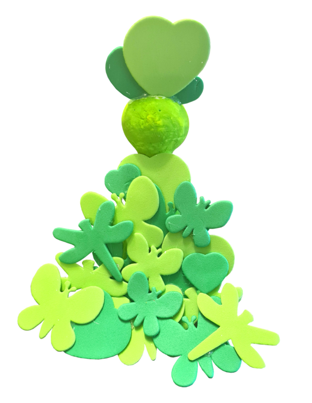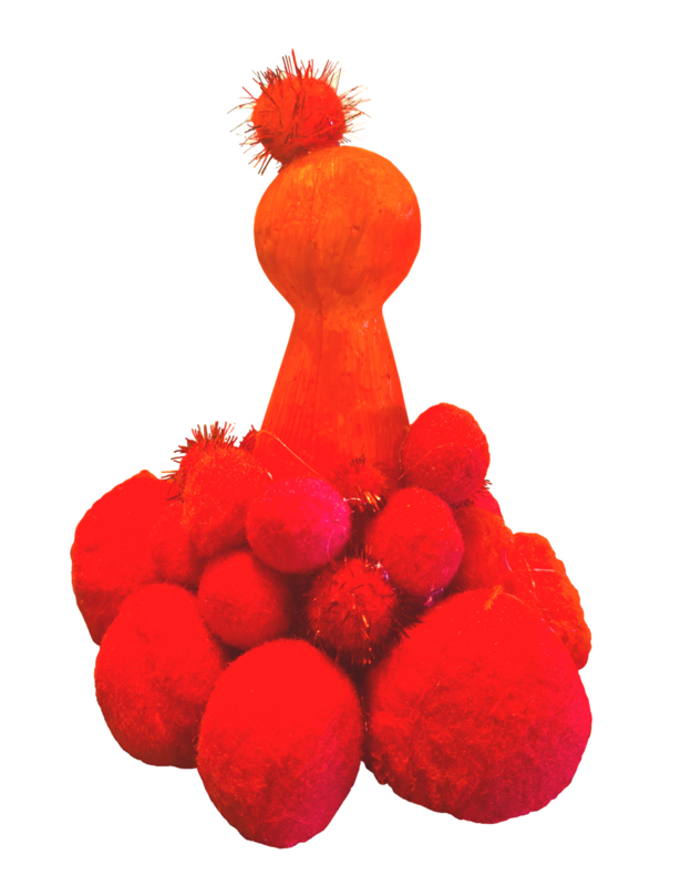 Ze zijn gemaakt van grote piepschuim pionpoppen en elk versierd