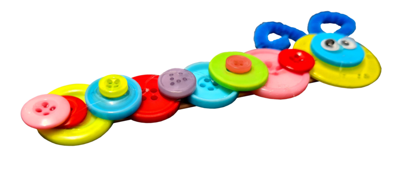 Op de knopen die het hoofdje moeten voorstellen plak je geen kleine knoopjes, maar 2 kleine wiebeloogjes.