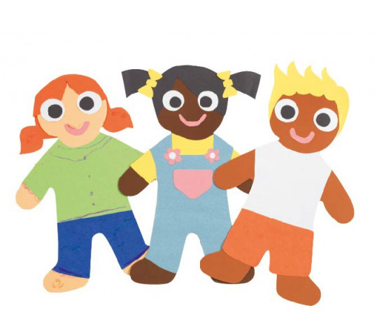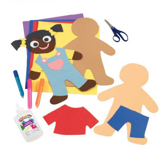 OverzichtSet van 24 mensjes van stevig karton in 5 verschillende kleuren.