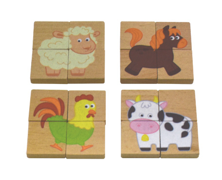 OverzichtSet van 8 houten puzzeltjes die magnetisch zijn; superleuk voor bij het magnetisch wandbord.