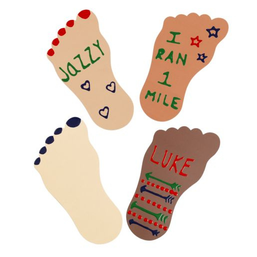 Pak met 24 grote voeten van lekker dik en stevig karton. De voeten zijn er in 4 verschillende huidskleuren, van elke kleur zitten er 6 in het pak.