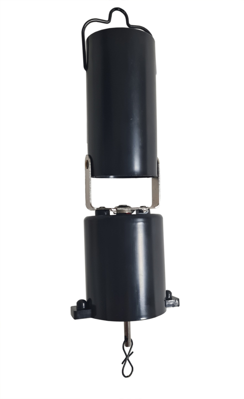Zodra je hem aan zet gaat het onderste gedeelte van het mechanisme draaien en het artikel dat je eraan hebt gehangen draait dan mee.