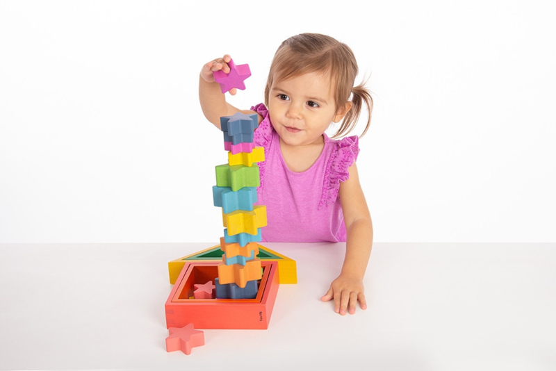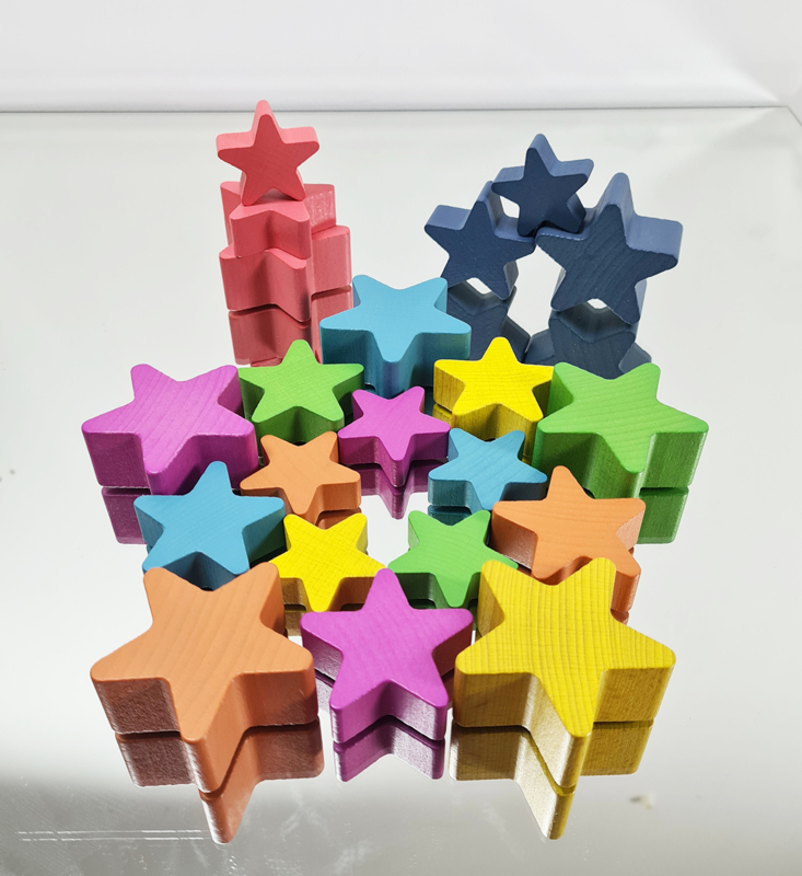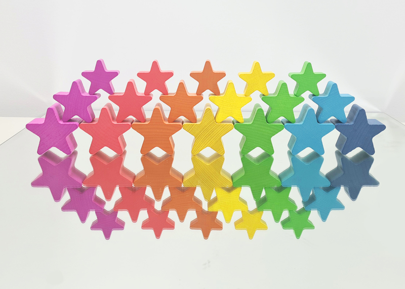 Met de set regenboog sterren krijg je 21 sterren in 3 verschillende maten. De sterren zijn dik en stevig en geschikt om mee te bouwen, stapelen en spelen. Ze combineren prachtig met de andere elementen uit deze serie.