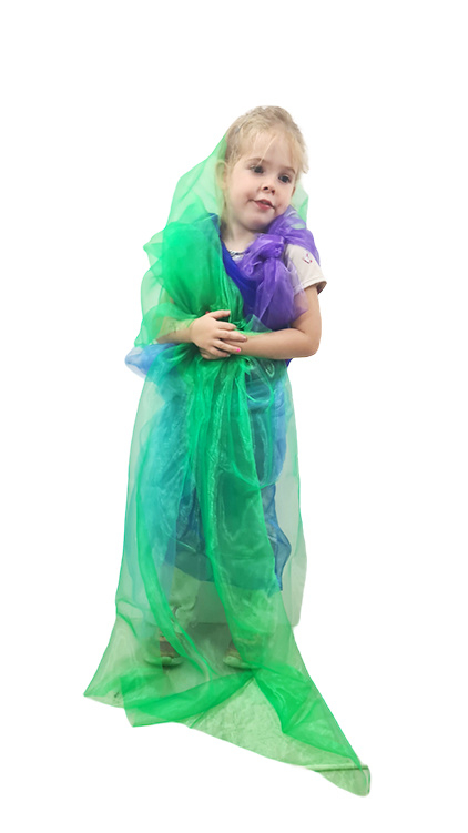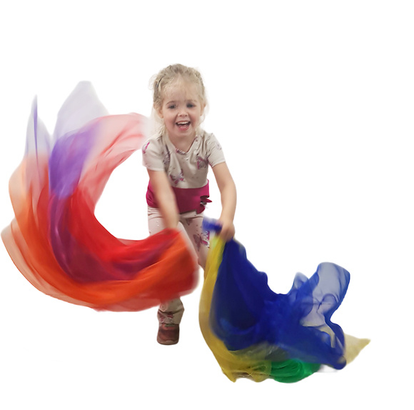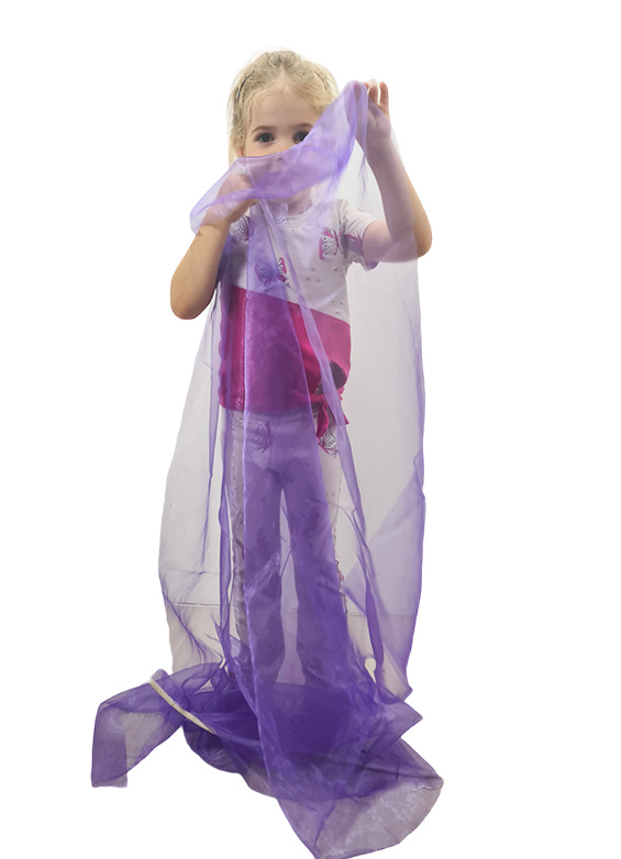 De doeken zijn 1 x 1,5meter (per stuk) en geschikt voor fantasiespel, rollenspel, verkleden, hutten bouwen, dansen en bewegen.