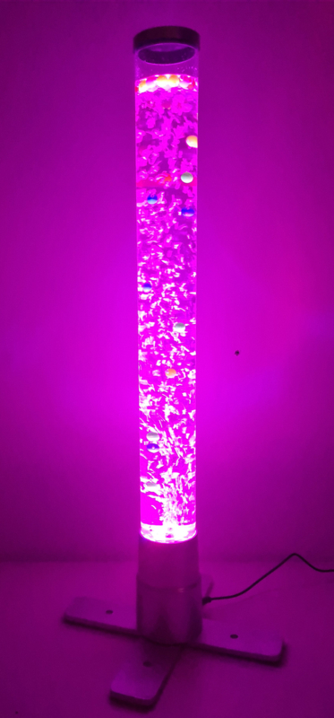 De bubbelbuis is gevuld met balletjes die samen met de bubbels voor een visueel spektakel zorgen. Ook is deze bubbelbuis natuurlijk voorzien van LEDlicht dat langzaam van kleur verandert.