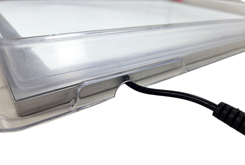Voor het snoertje van de lightpad zit er een kleine uitsparing waar hij netjes doorheen gaat zodat de cover niet gaat wiebelen.