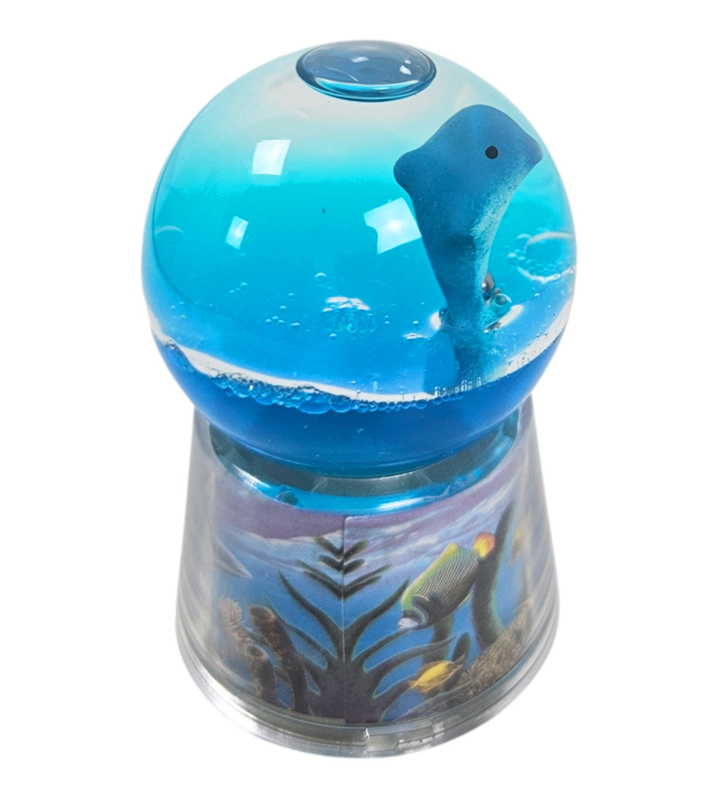 OverzichtEen schudbol gevuld met vloeistof en een dolfijntje. net als een snowglobe, maar dan net even anders.... en deze wordt van onderaf verlicht met een LED lichtje dat van kleur verandert!