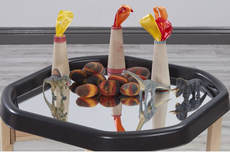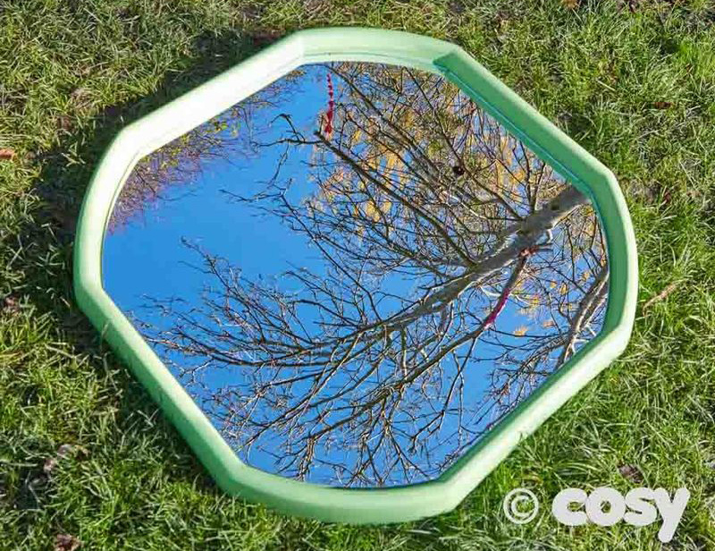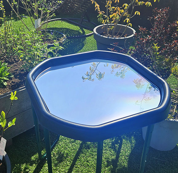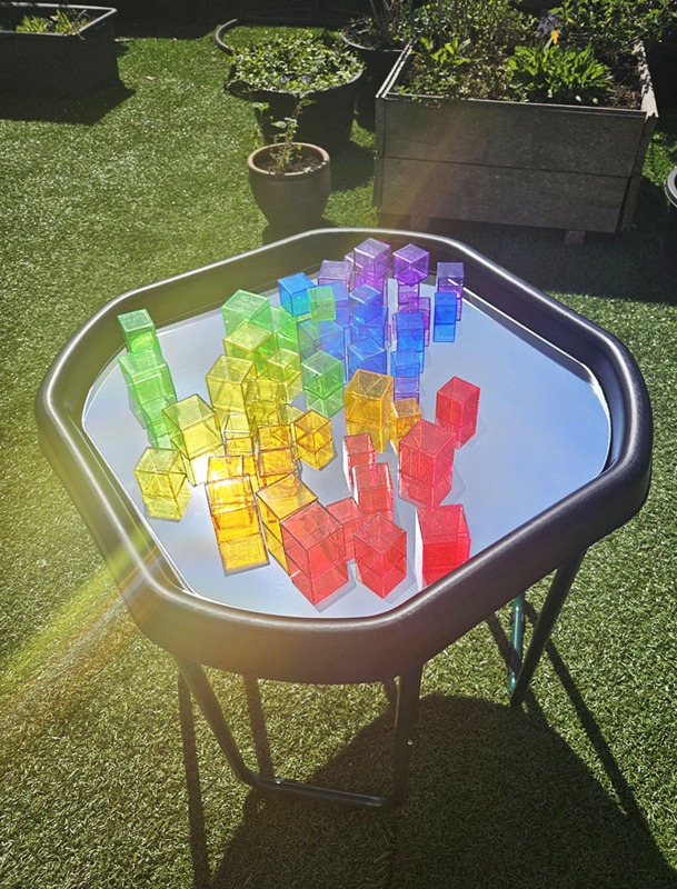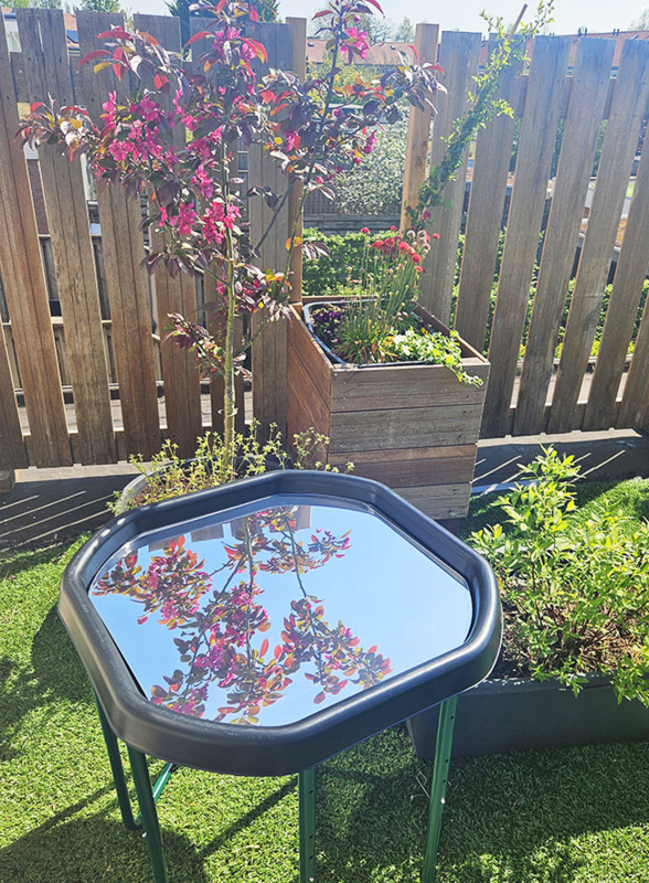 Een spiegel in je tufftray maakt je spel extra rijk. Vooral als je gaat bouwen, dan voeg je echt een extra dimensie aan je bouwwerk toe!