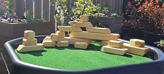 Niet helemaal natuurlijk, want het middenstuk is gewoon lang en recht zodat je ze wel echt kan stapelen, ermee kan bouwen en er tunnels en bruggen mee kan maken. Maar de uiteinden zijn niet recht afgezaagd, maar in facetten. Daardoor lijkt het als je hiermee gaat bouwen net alsof je met rotsen hebt gebouwd.