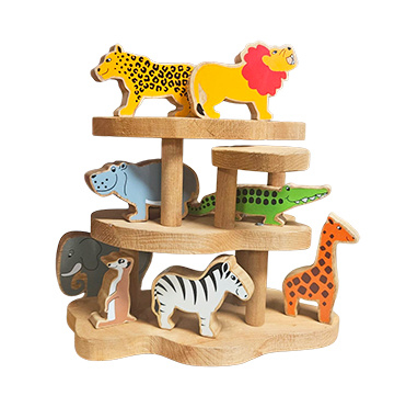Het is gemaakt van echt dik, onbewerkt hout. Met 3 grote platforms en 1 kleintje. (overige onderdelen die je op de foto's ziet zijn slechts speel-ideeen en zitten er niet bij).