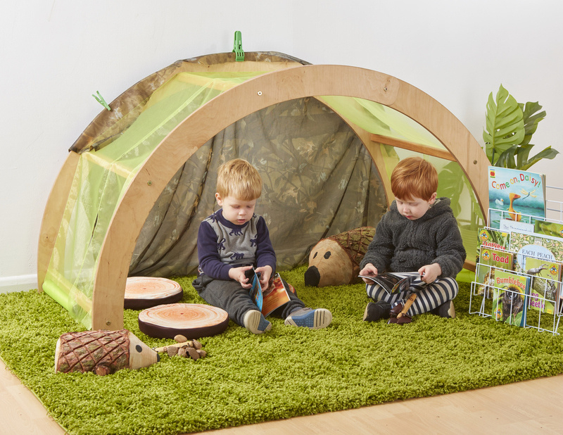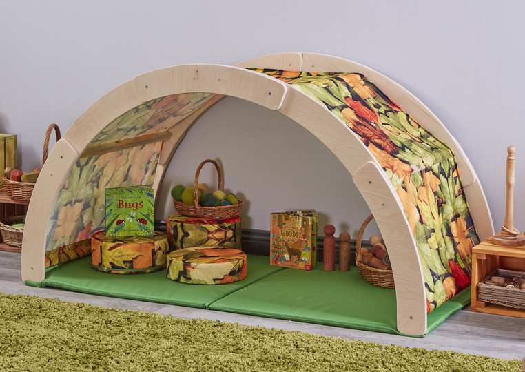 Met een doek eroverheen creëer je echt het gevoel van een klein huisje. leg er een dekentje in of wat kussens en je hebt een superfijn holletje. Ook ideaal om te snoezelen!